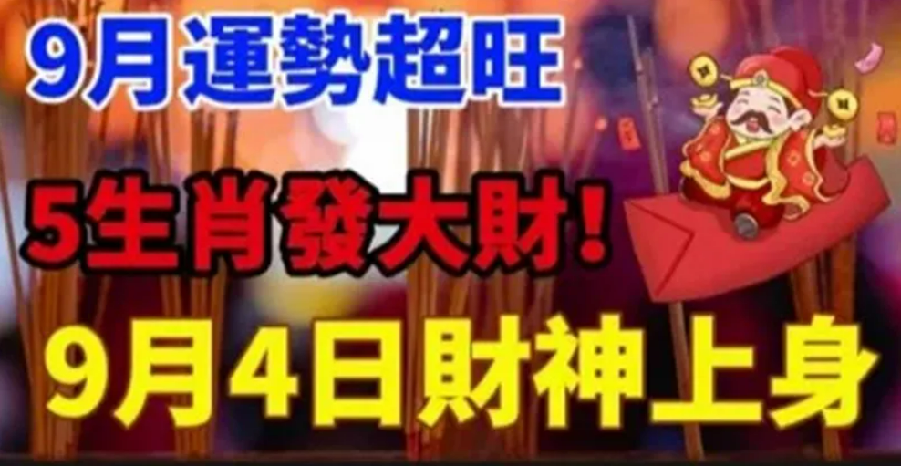 迎接9月到來,專業老師指出,有5個生肖運勢旺翻,滿分5顆星中,這5生肖獲得4至5顆星的高標準,想要趁