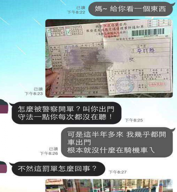 收到罰單被老媽訓斥「叫你守法都沒在聽」,結果發現兇手不是兒子… 這位網友就分享了在跟媽媽討論車子罰單