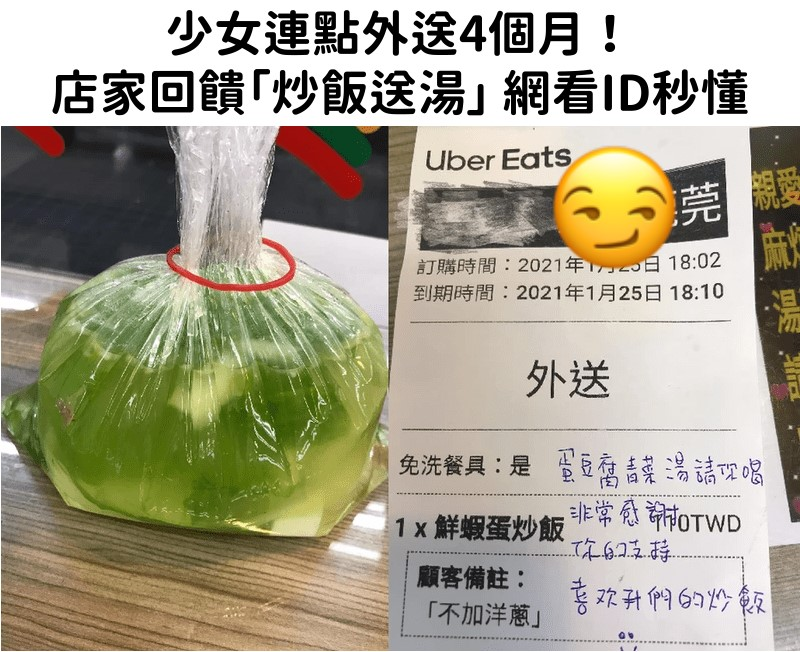 美食外送平台十分方便,不用出門只需動動手指,食物就會送到家。對此,有名女網友透露,連續向同家店訂了4