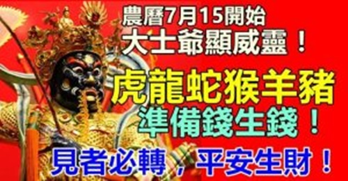 生肖虎,生肖龍 農曆7月15大士爺賜大財,屬虎與屬龍朋友準備錢生錢!在這農曆7月要行好運不易,要大財