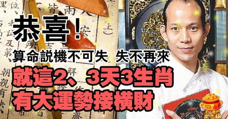 天星流轉不定,人生的運勢也變化莫測,年,月,日都不同。今天過後3大生肖的財運將會逐日增旺,事業上發展
