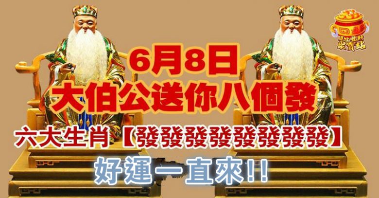 6月8日大伯公送你八個發,六大生肖必發 生肖屬鼠的朋友聰敏顯貴,生來富貴,從小基本不會受太多苦,而且