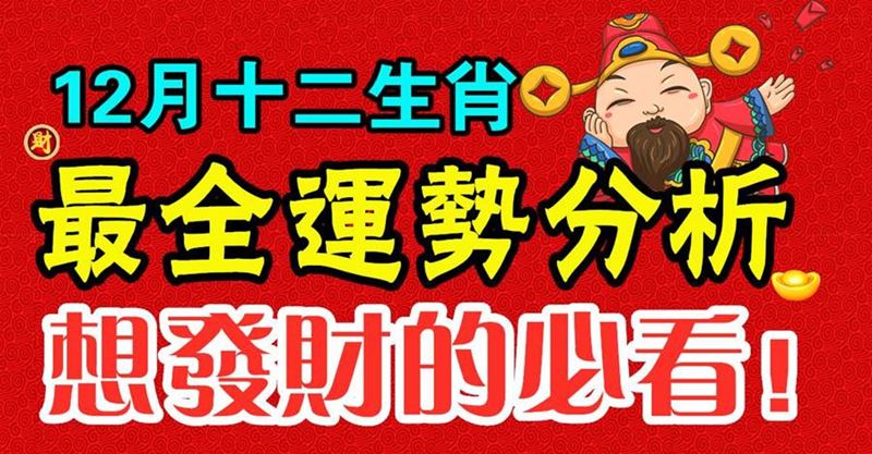 2020年最後一個月即將到來,想知道你在12月的大致運勢嗎?十二生肖來聚齊,肖鼠就愛排第一! 1.生