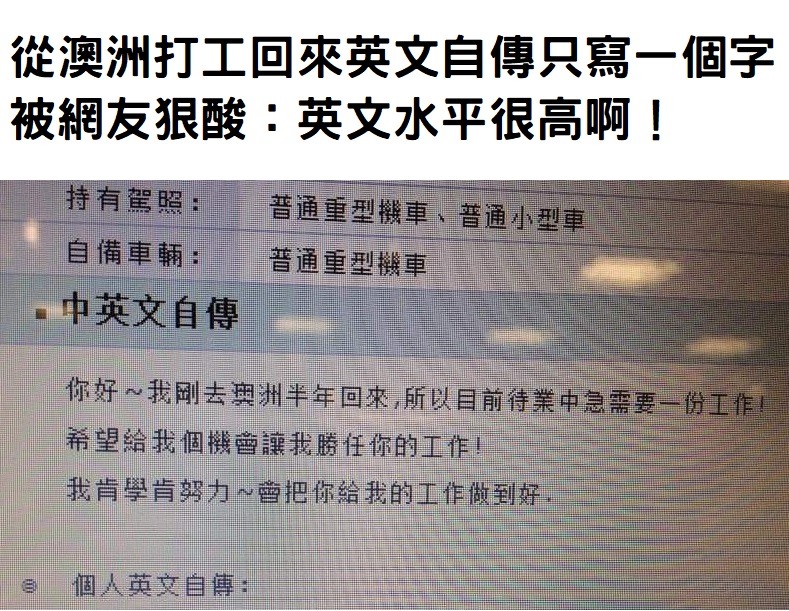 現在許多公司都會希望面試者的語言能力有一定的水平,便會要求面試者在求職履歷裡面要附英文自傳!近日有