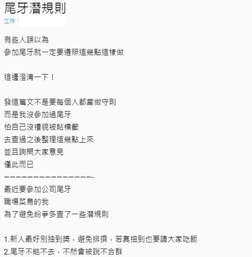 最近是尾牙旺季,儘管受到疫情影響,許多公司取消活動,但最令人期待的「抽獎」仍少不了。一名剛進公司3個