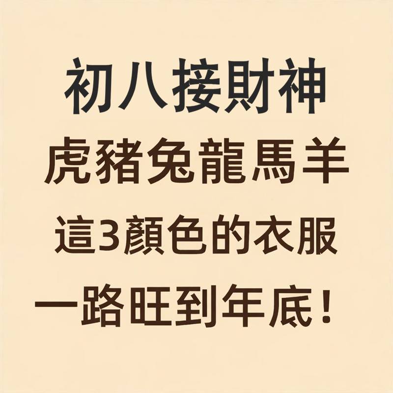 初八接財神!虎、豬、兔、龍、馬、羊 穿這3顏色的衣服,一路旺到年底! 大年初八是「順星接財神」的重要