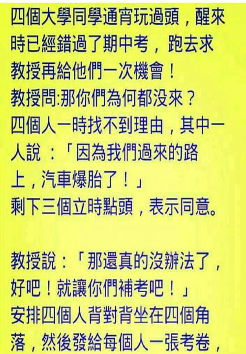 教授為四位遲到的學生補考,居然出了這題神問題…!