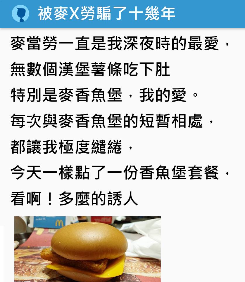 其實我不常吃麥香魚,都吃雙層牛肉吉事堡這樣,不過剛看到Dcard一名網友分享的「真相」