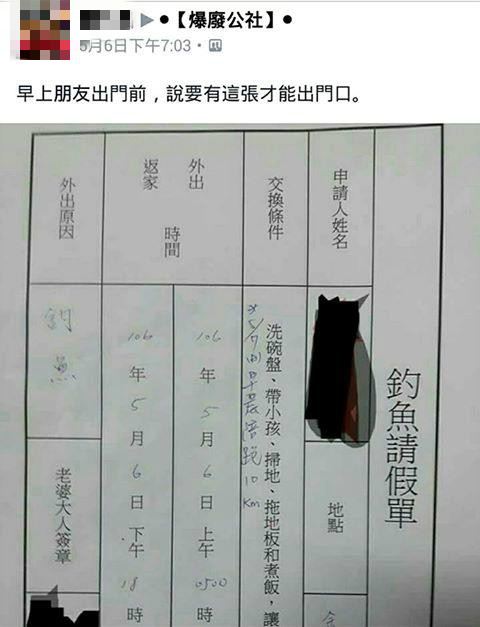 他想去釣魚需向老婆大人提交「請假單」,男生看完「超狂代價」都哭了! 結婚後要出門還得寫假單?一名網友