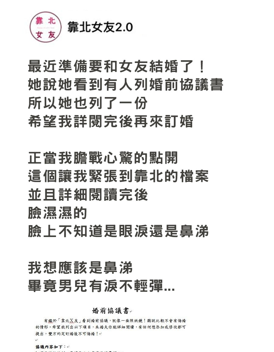這真的是超棒的啊! 超級明理的老婆,裡面每一條都寫得清清楚楚,根本就是台女的典範啊! 遇到這種女生,