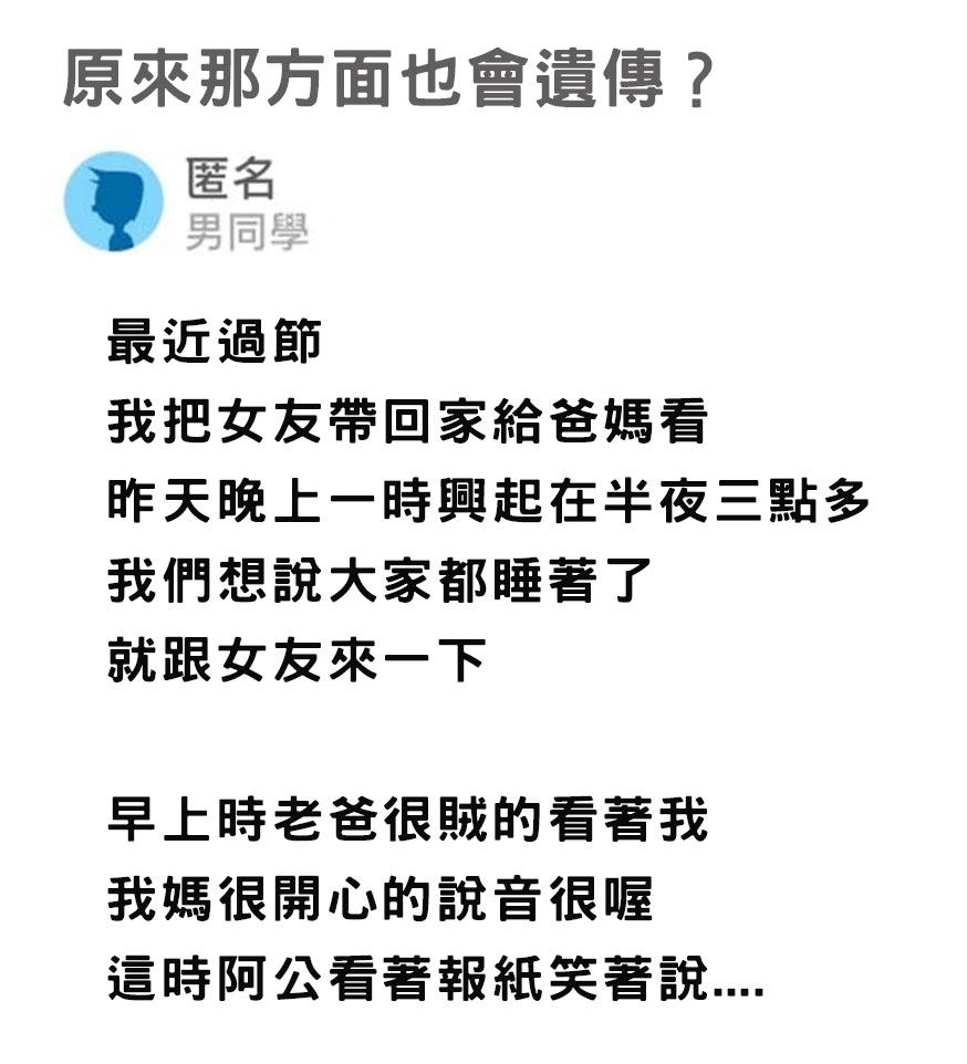 情侶交往久了 免不了就要進展到自然關係 但有時候被家人這樣糗一下 好害羞啊~ 一名網友在Dcard發