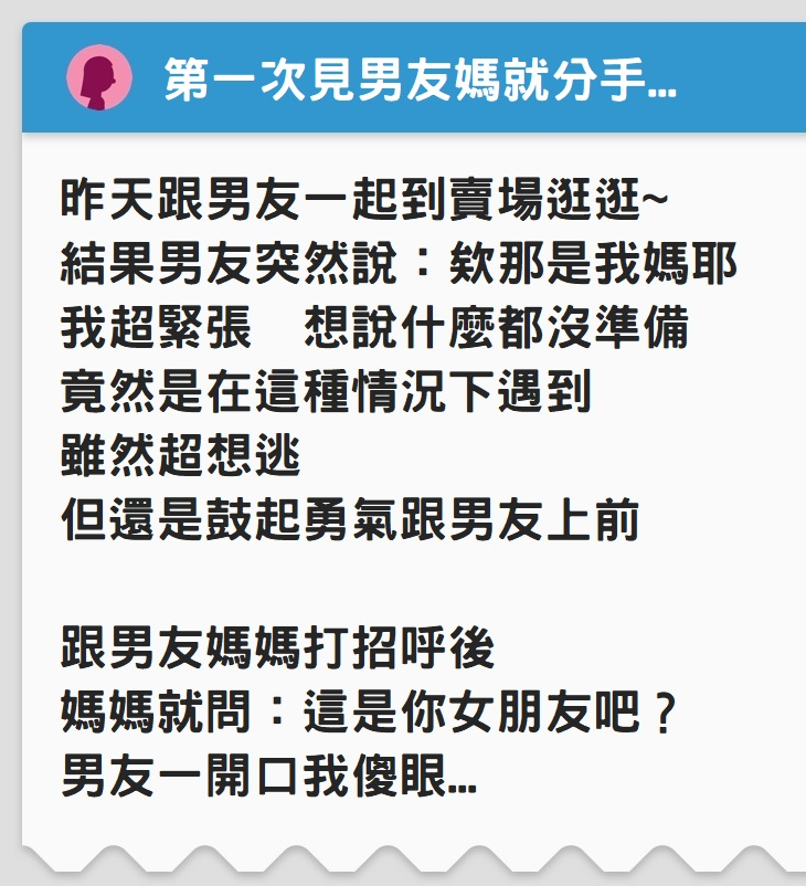 第一次見男友媽就分手⋯ * 昨天跟男友一起到賣場逛逛~ 結果男友突然說: