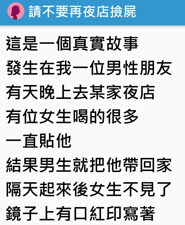 原PO: 這是一個真實故事 發生在我一位男性朋友去某家夜店 有位女生喝的很多,一直貼他 結果男生就把