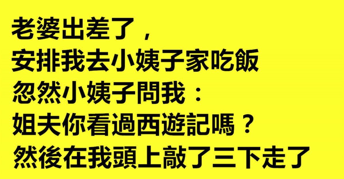 老婆出差了,臨走之前安排我去小姨子家吃飯,飯桌上我們聊的很開心,忽然小姨子問我:「姐夫你看過西遊記嗎