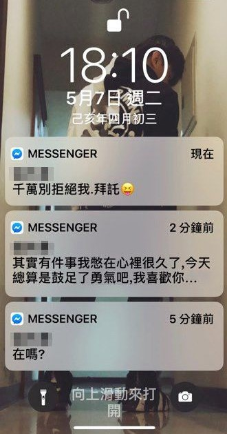 有一名王姓男網友,在晚間突然接到來自正妹友人的私訊,一次就傳了三封,竟是要對他告白「其