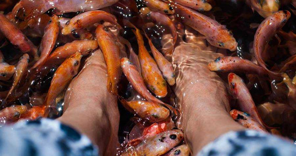 「魚療」就是浸入魚池,再由池中小魚啄食身上的死皮,近年在全球各地風靡,日前一名女子享受著魚療,卻因為