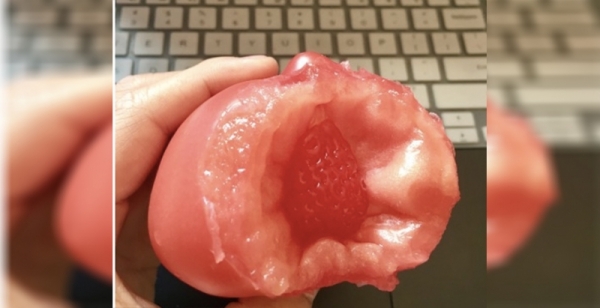 有網友分享自己原本吃番茄吃得好好的,想不到咬了一口後,裡面竟然跑出了一顆完整無缺的草莓,讓他忍不住