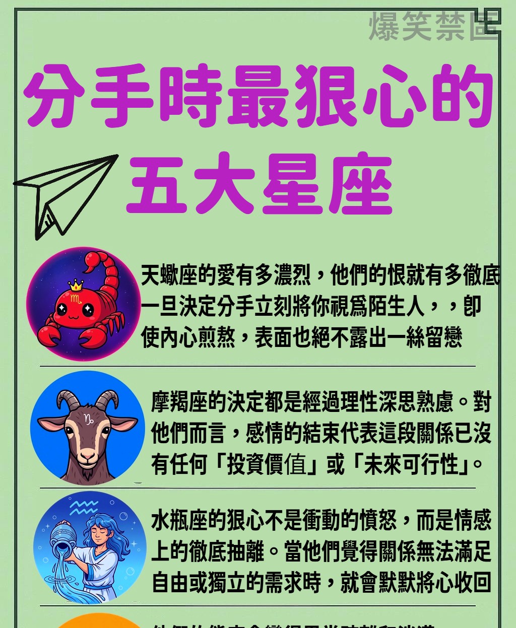 追蹤我們的threads ! 歡樂不迷路 分手是感情中最殘酷的時刻,而有些星座在結束關