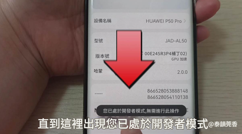 首先,打開【設定】→ 點【關於手機】,然後連續點版本號,直到畫面跳出「你已進入開發者模式」。