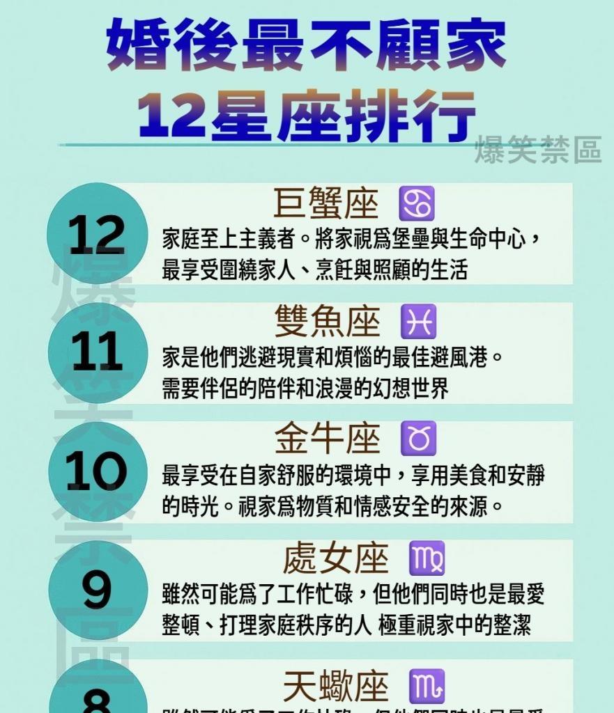 不顧家核心: 婚後重心完全偏向事業成就,為了目標可以犧牲陪伴。他們會長時間在辦公室或商務應酬中,將家庭生活排在次要位置。