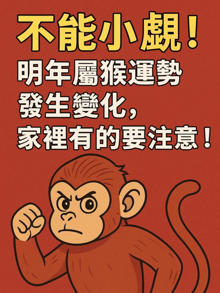各位家中有屬猴成員的朋友們請注意!2026年(丙午馬年)對生肖猴來說,將是一個運勢全面洗牌、挑戰極高的關鍵年份。這絕非平淡的一年,而是充滿壓力和機遇的**「先苦後甘」**之年。