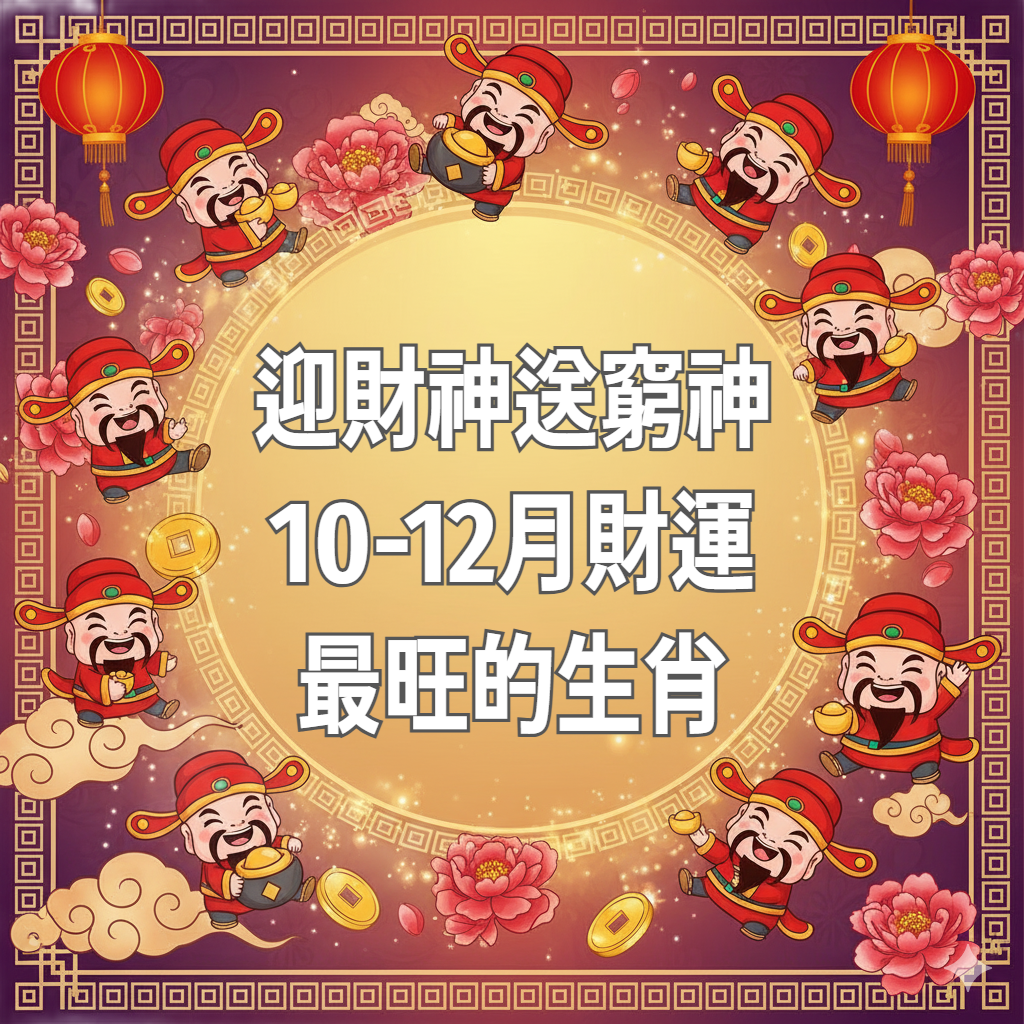 隨著 2025 年進入尾聲,星象能量也從土相逐漸轉入強勁的水相(亥月與子月),水主財富流動與智慧。對於某些生肖來說,這不僅是換季,更是**徹底「送走窮神,迎財神」**的黃金 90 天!
