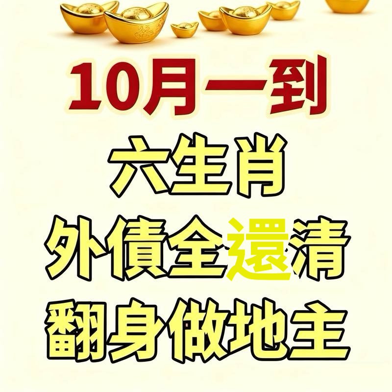 金秋十月,天時轉換,萬物迎來新生。對於某些生肖來說,這個月不只是財運回升那麼簡單,而是你真正的翻身時機——債務清空、財運爆發,有望成為「地主」級的富貴人。