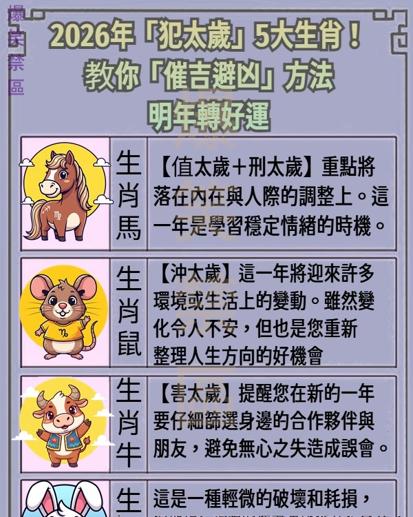 以下為您解析五個特別需要留意的生肖,以及溫和的「催吉避凶」心法: