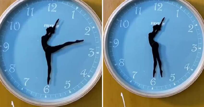 這時鐘的「時針」與「分針」竟然是一個跳舞女人的身體和四肢!隨著時間轉動,這個人形剪影的姿勢會不斷變化,有時像在踢腿、有時像在扭腰,有時甚至像是在做不可描述的姿勢。老婆瞪大眼看著那剪影,越看越覺得怪。
