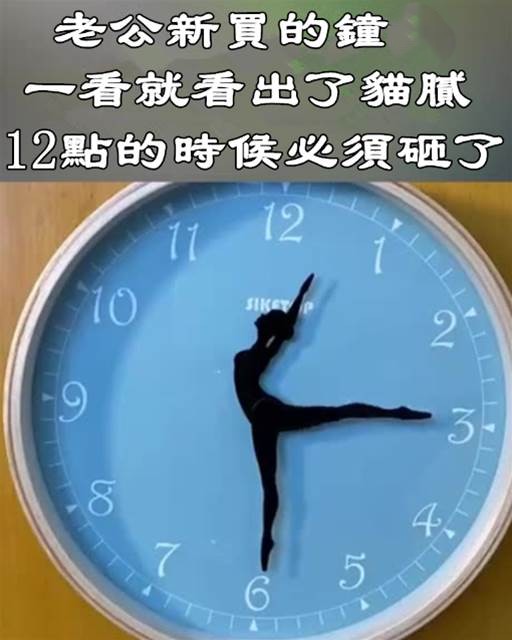 當指針指向12點時,人形剪影的四肢瞬間擺出一個奇怪又尷尬的「頂天立地」姿勢,看起來像是在做高難度體操,甚至有點像在「被吊起來」。畫面太衝擊,老婆瞬間臉紅到不行,忍不住大叫: