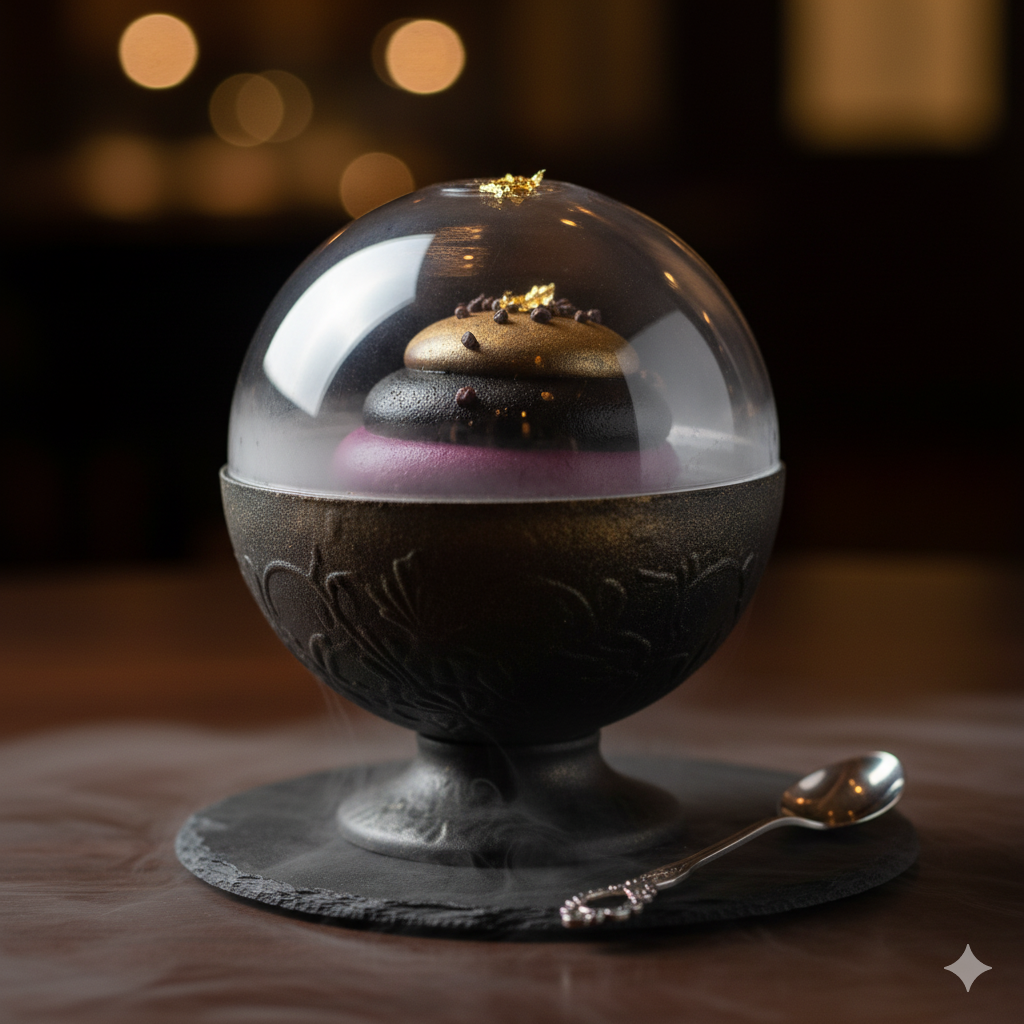 D. 🧀 被包裹在精美容器裡、看似神祕的慕斯甜點。 (追求新奇與內涵)
