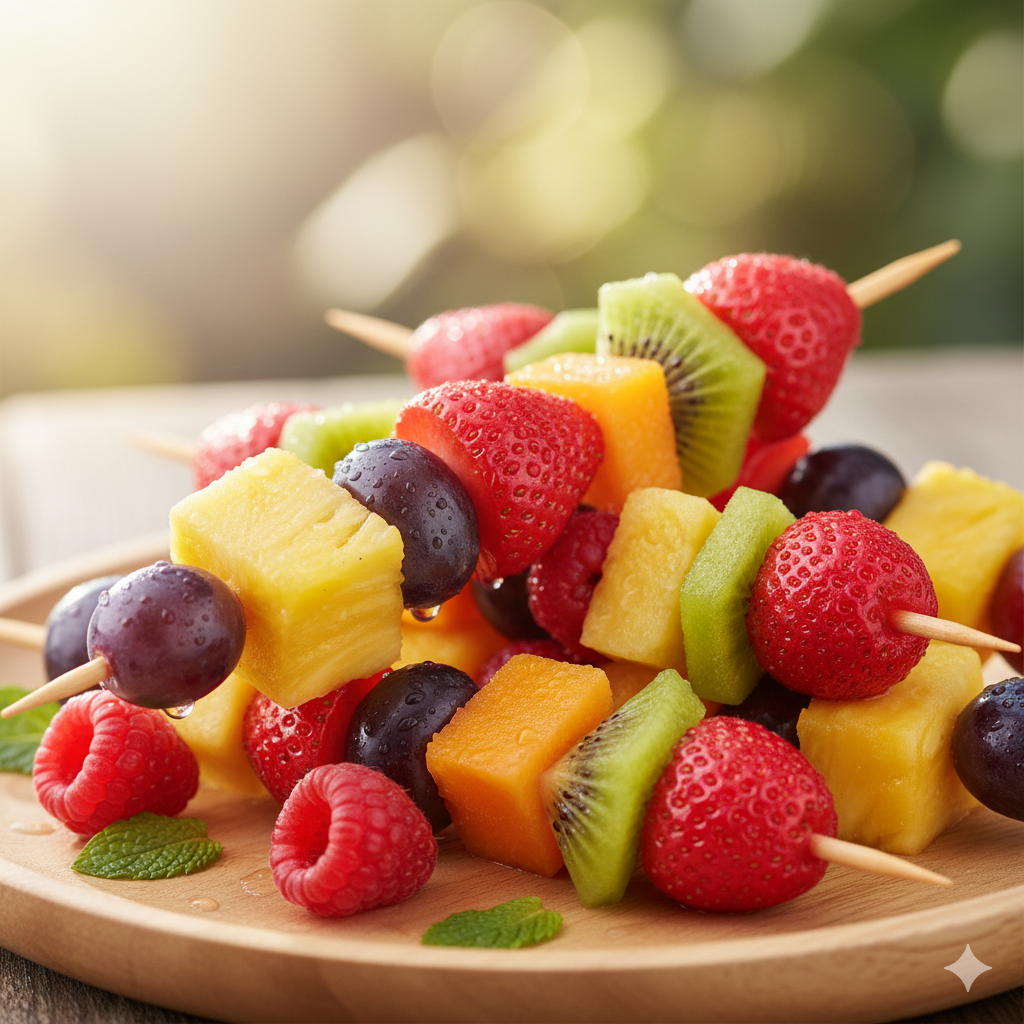 A. 🍇 色彩鮮豔、新鮮多汁的綜合水果串。 (追求自然與和諧)