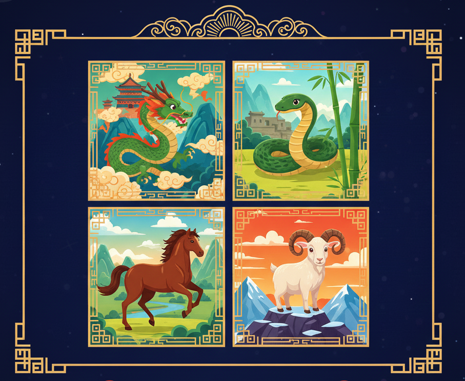 龍 (Dragon): 💰 財運最旺 (TOP 3): 辰酉六合 + 食傷生財。創意和合作能帶來豐厚收入,適合在吉時進行簽約、合作談判。