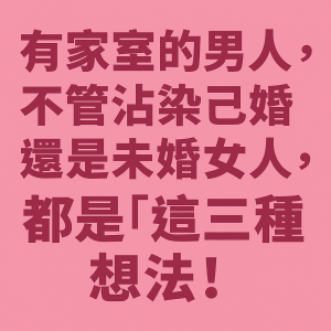 不管沾染已婚,還是未婚女人,都是「這三種」想法。