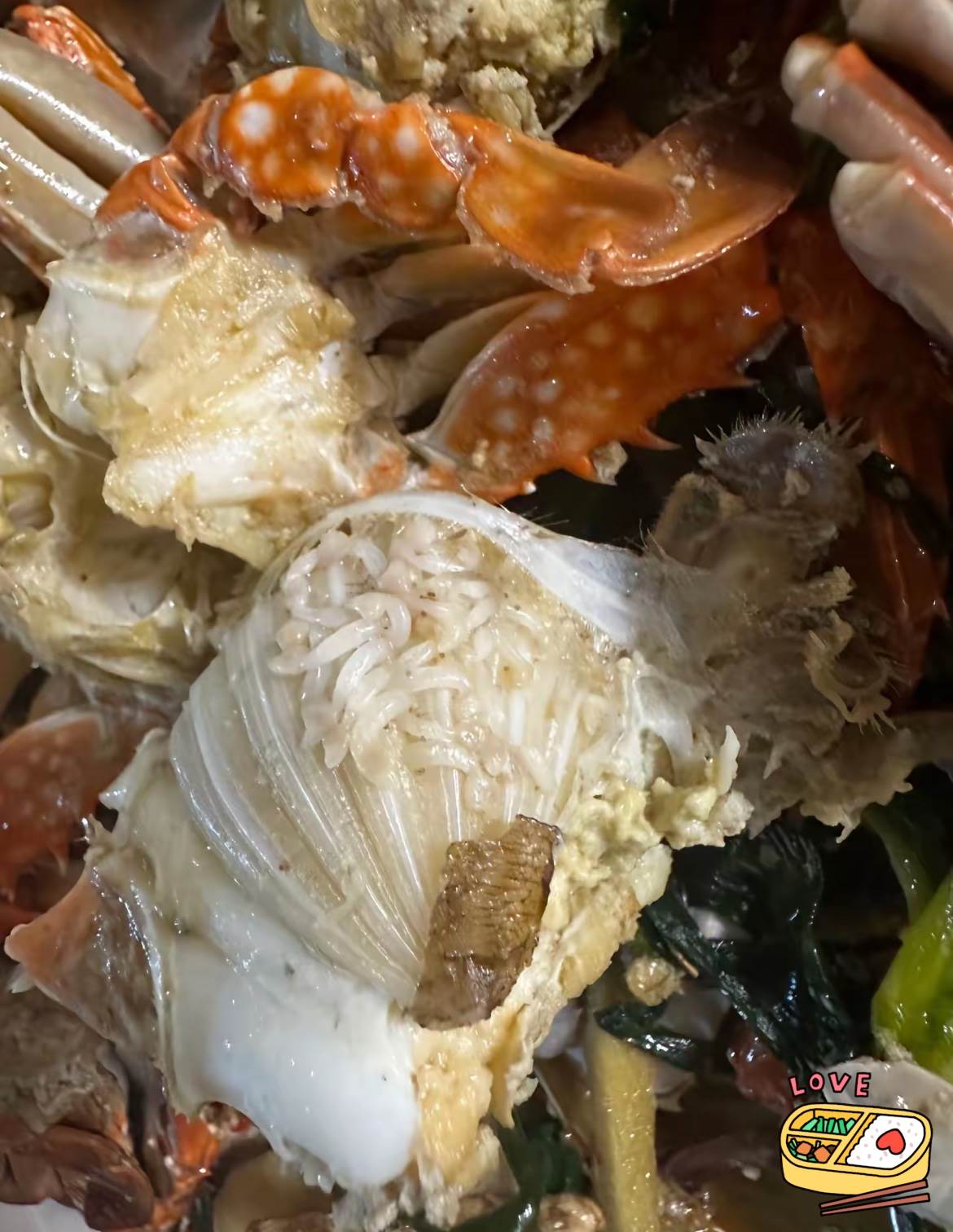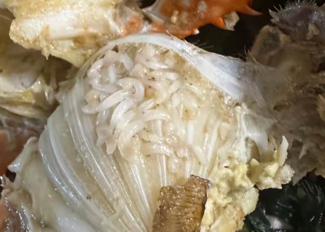 推文網友描述了一次糟心的用餐經歷:「吃到一半發現這些東西,好惡心啊」。他(她)上傳的螃蟹照片清晰顯示其腮部「布滿了白蛆一樣的小蟲」,視覺效果「讓人難以入口」。這意外發現顯然破壞了食欲并引發了對食品安全的擔憂。