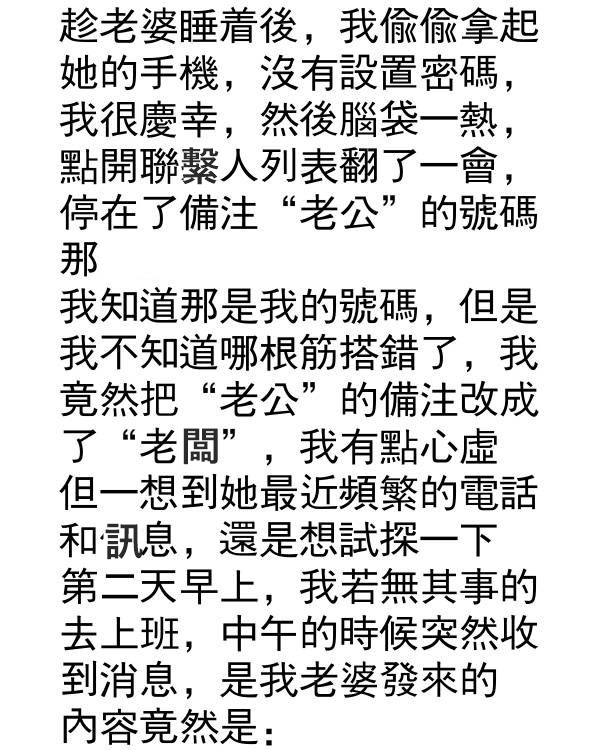 突然,我記起了昨晚的事——我改了她手機聯繫人備注,把“老公”換成了老闆的名字。