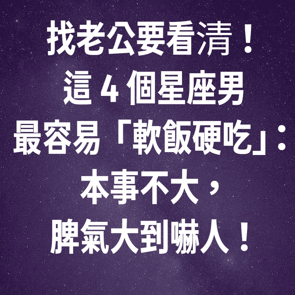 原因解析: 牡羊的「暴躁」是出名的。當他能力跟不上野心時,會產生極大的挫敗感,轉而對家人咆哮。這種「窩裡橫」的特質,常讓老婆覺得像在照顧一個隨時會爆炸的巨嬰。