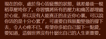 性格解析: 初見你時可能覺得有點高冷或嚴肅,但一旦進入你的內心世界,會發現你無比熱情且充滿力量。你非常有擔當,是朋友們眼中最可靠的避風港。