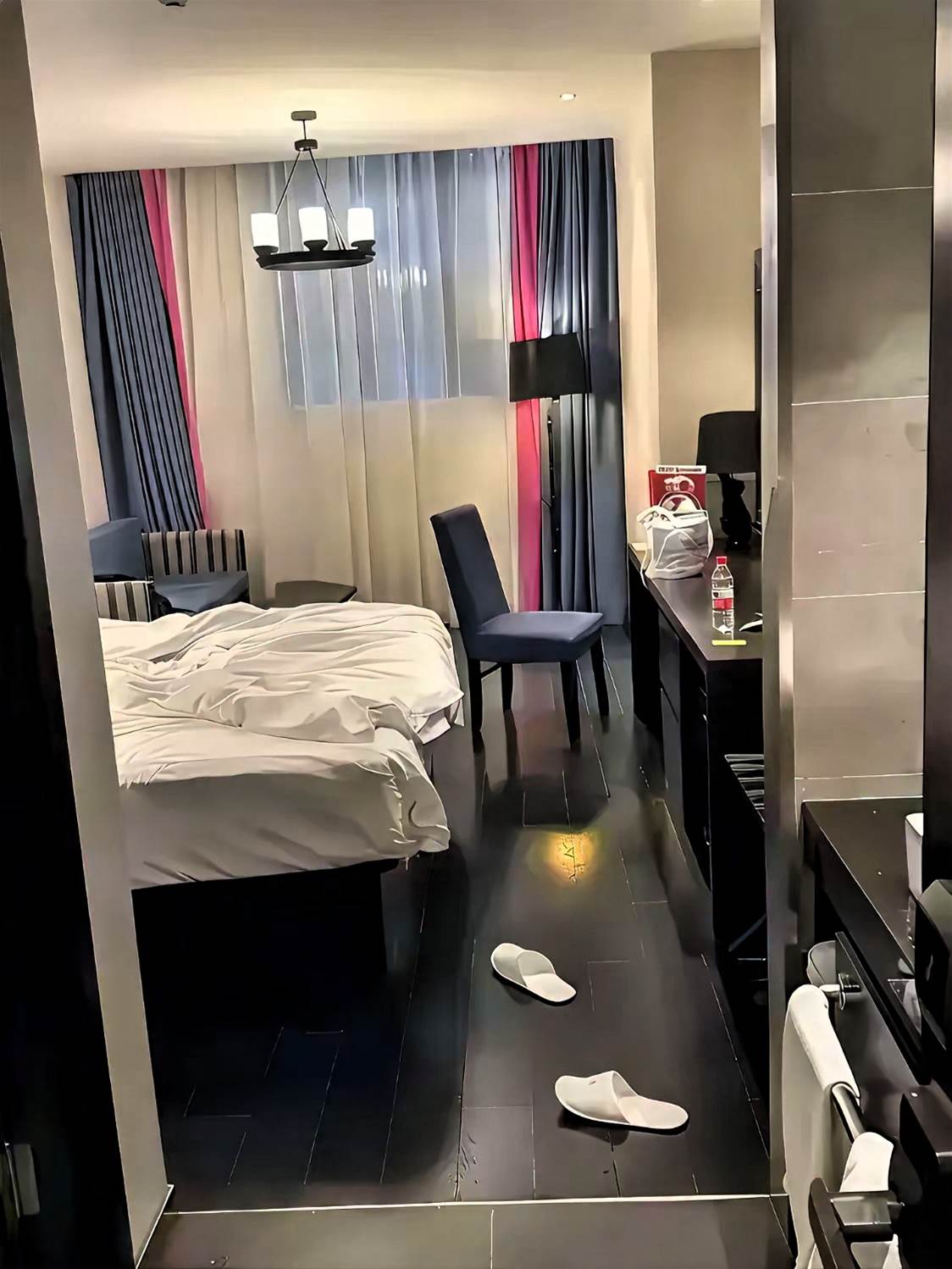 原來這竟是他和同事精心設計的「報平安模板」——每次出差都住同家酒店同一房型,提前拍好素材隨時發送!更諷刺的是,網友翻出他半年前的照片對比:3月出差照:手錶戴左手,現在換到右手(方便摟人?)、5月「工作餐」照:兩人餐具卻只拍一份(評論區當時就有人問「對面是誰」)