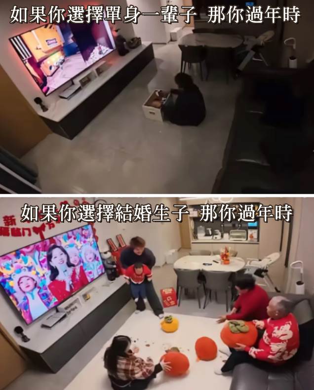 隨著社會發展與價值觀的轉遷,年輕一代對於婚姻與家庭的看法正產生質變。近日,有網友透過兩張圖片對比「單身」與「結婚」在過年時的不同景象,試圖勾起大眾對家庭生活的嚮往。然而,這番嘗試卻意外引發廣大網友的理性思辨與反諷。