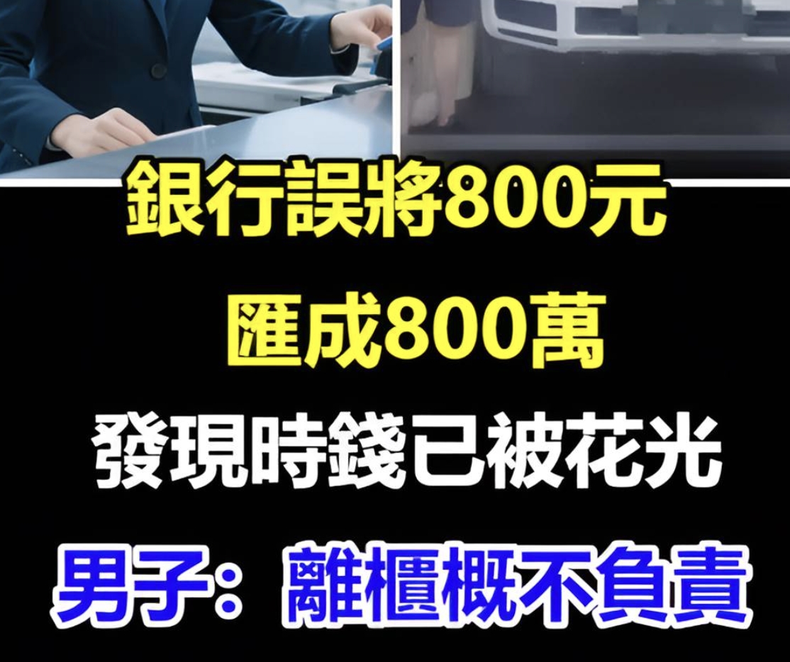 銀行誤將800元匯成「800萬」!發現時錢已被儲戶花光,男子:離櫃不負責