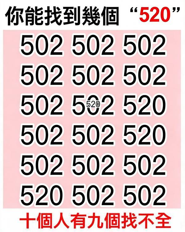 憑第一眼直覺,數一數圖中到底有幾個「520」。