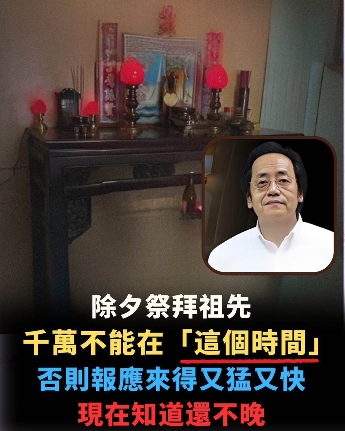 在農曆除夕這個辭舊迎新的日子,祭拜祖先是感念祖德、接引福報的重要儀式。然而,祭拜的時間點若選擇錯誤,不僅無法獲得庇佑,還可能導致家宅能量混亂,讓衰運立刻回來。