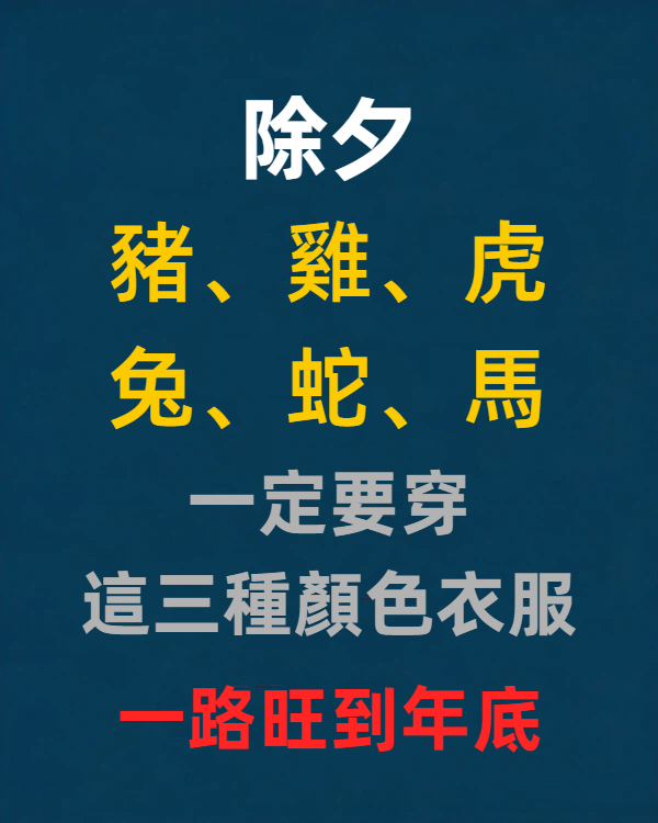 今年除夕,屬豬、雞、虎、兔、蛇、馬的朋友記住這3色: