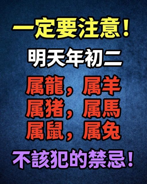 2026 年 2 月 18 日(農曆正月初二)是傳統回娘家、迎婿日,也是磁場能量「回流」的關鍵時刻。對於 屬龍、屬羊、屬豬、屬馬、屬鼠、屬兔 這六個生肖的朋友,明天的能量波動較為敏感,務必記住以下「禁忌一條條」,否則容易驚動神靈,導致財庫破損、衰運不斷!