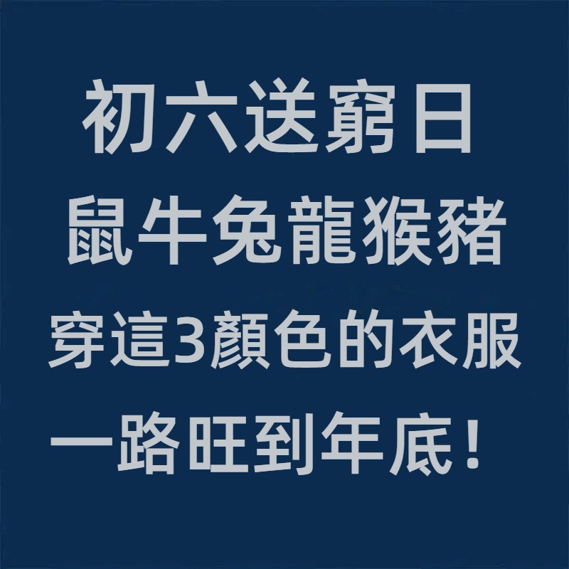大年初六是民俗中的「送窮日」,象徵把霉運、窮氣送走,迎接一整年的好財氣與好運勢。這一天,穿對顏色=替自己開運加分✨