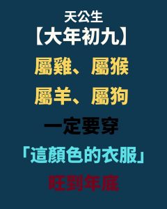 大年初九「天公生」屬雞、屬猴、屬羊、屬狗一定要穿「這顏色的衣服」旺到年底