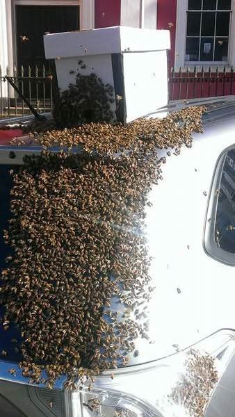 不論這輛車駛向何方,蜜蜂們始終如影隨形。它們對蜂王的忠誠表現得淋漓盡致。路人看到這群蜂群幾乎覆蓋了整個車尾,猶如一張巨大的蜂巢,靜靜地停留在那里,仿佛是在守護著什麼神圣的使命。沒有人敢接近車子,因為蜜蜂的防衛行為十分明顯,任何接近者都會遭到猛烈的攻擊。