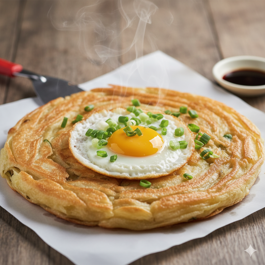 C: 香氣四溢、層次分明的蔥抓餅加蛋