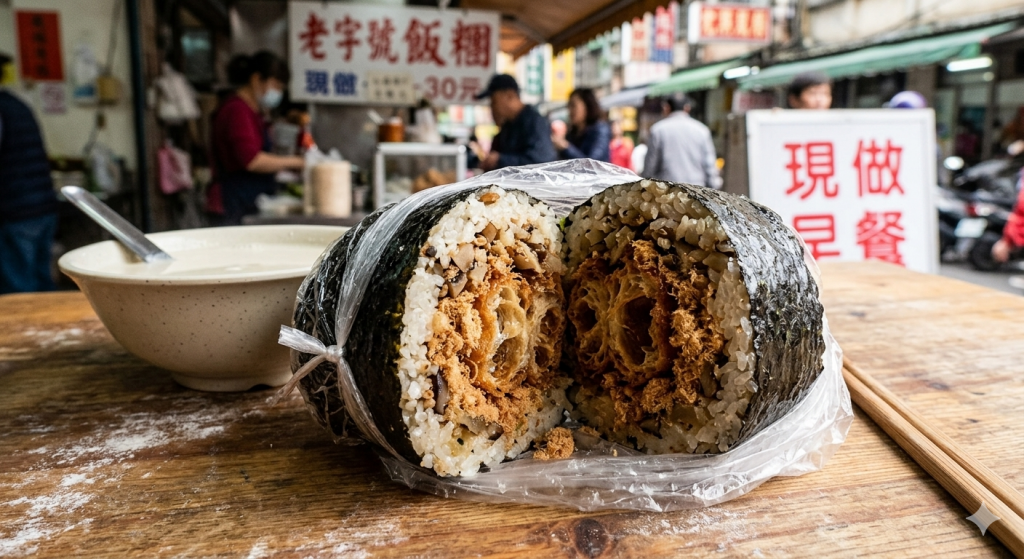 B: 紮實有飽足感的飯糰(裡面包著老油條、肉鬆)